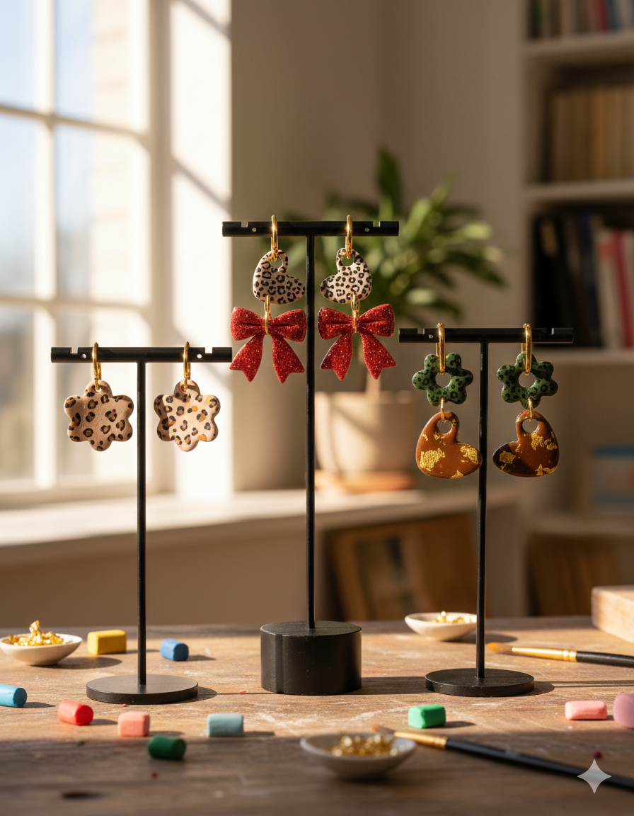 Boucles d'Oreilles Fleur Bleu Pailleté - Avec ou sans créoles